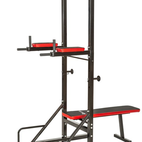 Kompakt och stabil modell med flera hållare för viktskivor.