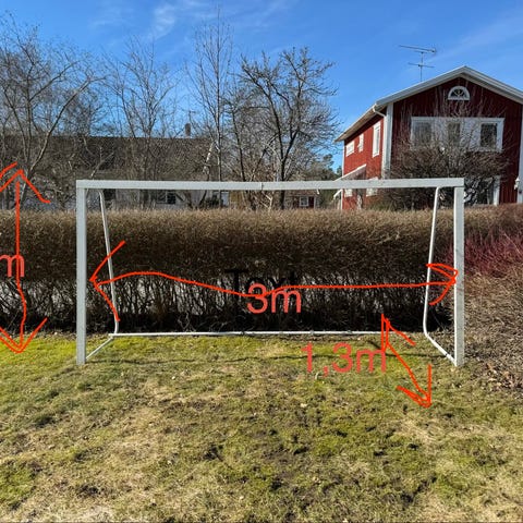 Ca 45 kvm konstgräs i fyra delar, anpassat för lek och bollspel. Passar som mindre fotbollsplan eller lekyta i trädgård eller på tomt där man vill ha ett slitstarkt och lättskött underlag.