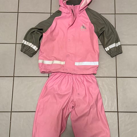 Ett ofodrat lila/rosa regnställ från Pax i storlek 110/116. Regnkläderna är väldigt sparsamt använda.
