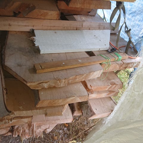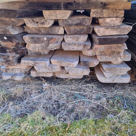 -2 plank (i mitten på bilden). Den ena 5 x 23 cm. Längd 3,30 m. Den andra 5 x 20 cm. Längd 2,98 m.