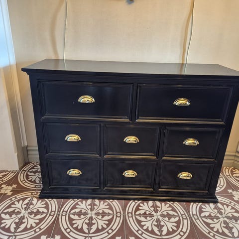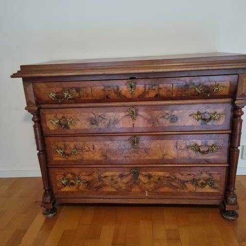 Antik byrå från 1835. Original målad, 4 lådor, översta lådan indelad i fack. Lås i samtliga lågor inklusive nyckel.