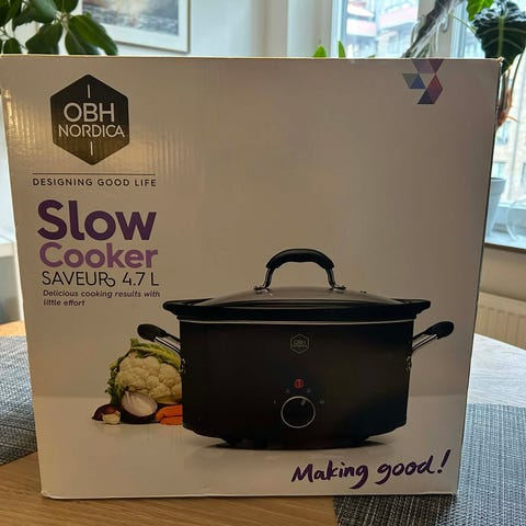 Russell Hobbs Compact Home slow cooker med en kapacitet på 2 liter. Grytan har en rostfri utsida och glaslock. Lämplig för långkok av exempelvis grytor, soppor och andra rätter som ska tillagas på låg värme under längre tid. Utrustad med vred på framsidan för val av värmeläge. Levereras med bruksanvisning enligt bilden.
