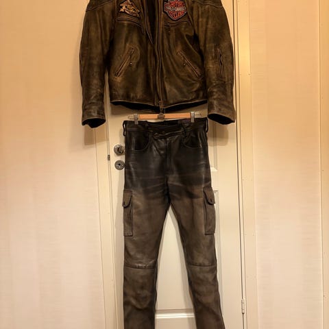 motorcykeljacka och byxor svart textil och skinn