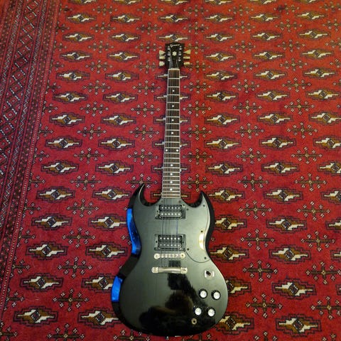 Jag har ägt gitarren i fyra år och spelat på den jämt. Den är plekad och i ett otroligt spelskick men jag väljer att sälja den till förmån för andra gitarrer.