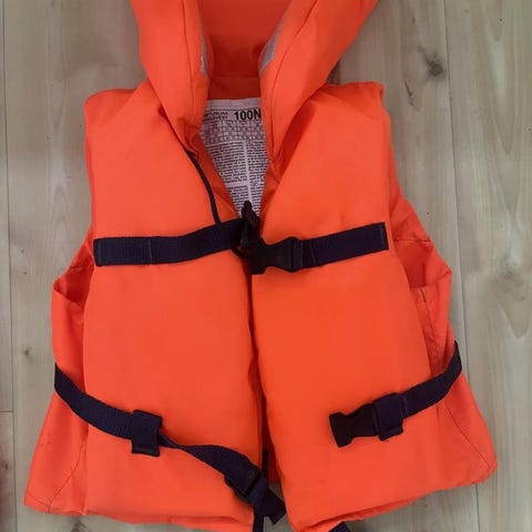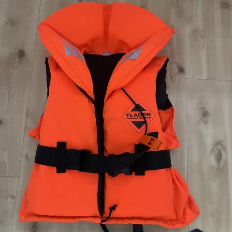 5 st oanvända flytvästar med lapparna kvar.
