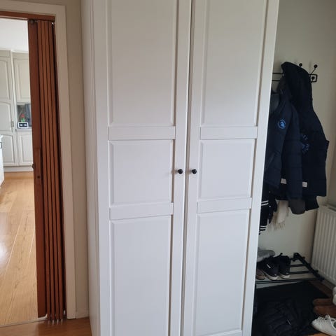 Garderoben är redan monterad men köparen ansvarar för nedmontering och transport.