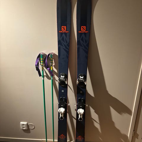 Salomon QST 99 skidor i längd 181 cm. Skidorna har måtten 138–99–120 mm. Utrustade med Salomon Guardian rambindning topptur -bindningar. Använt med lite repor men mer och ge. Blir nog som nya under med en vallaomgång.