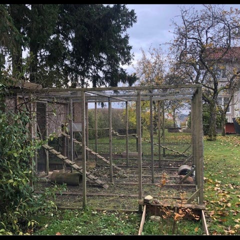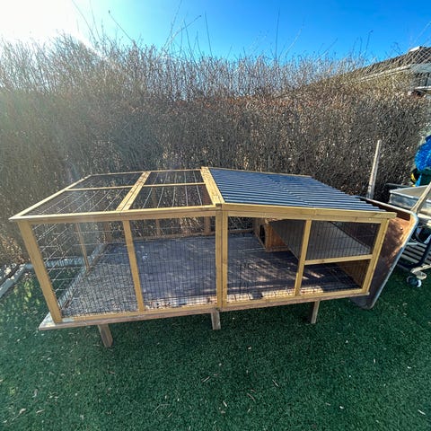 Robust smådjurs bur i tryckimpregnerat virke med murar nät
