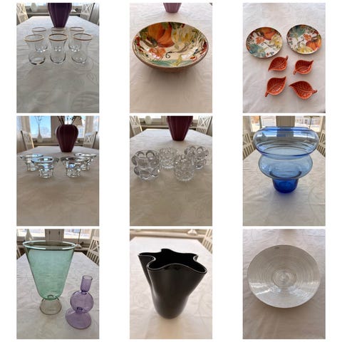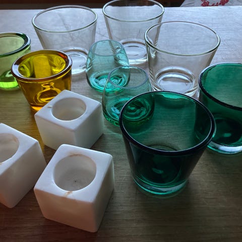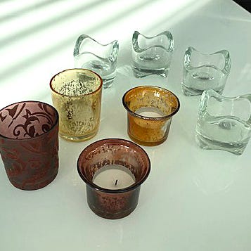 8 ljuslyktor säljs tillsammans. Olika storlekar, alla är i glas .