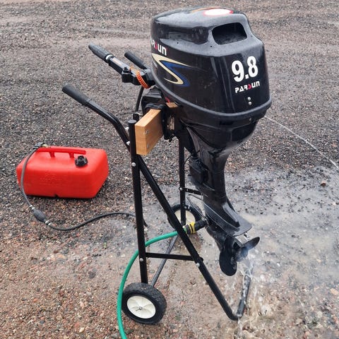 Säljer min oanvända Parsun 9,8 hk kort rigg 4-stroke. Nypriset ligger runt 20,000:- men jag slumpar bort denna för 11,000:- vid snabb affär och kastar även in motorbocken på köpet. Dock medföljer ingen bensintank då denna har försvunnit på något mystiskt vis.