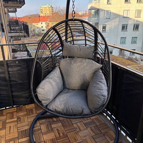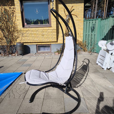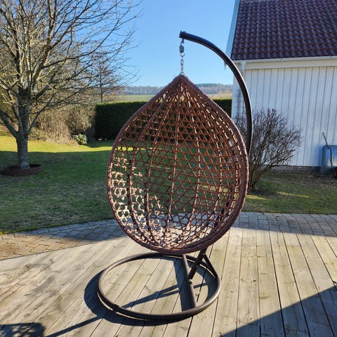 Hillerstorp hängfåtölj Ägget. svart rotting med stativ