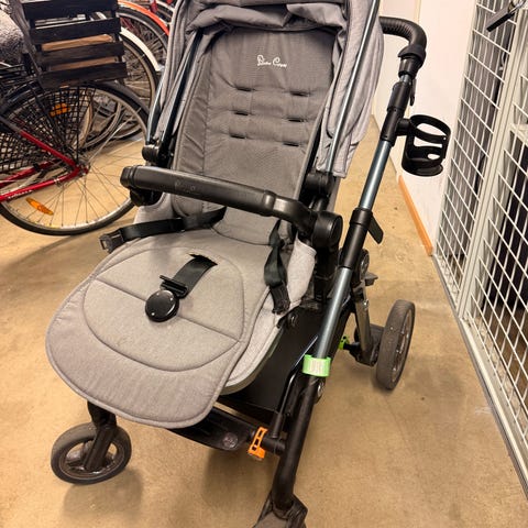 Silver Cross klassisk liggvagn barnvagn i grått utförande. Vagnen har stor liggdel med madrass och textilklädsel med mönster invändigt. Klassisk design med kromat chassi och stora hjul. Handtag i metall med svart grepp. Passar för spädbarn i liggläge och ger gott om utrymme för barnet vid promenader.
