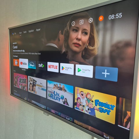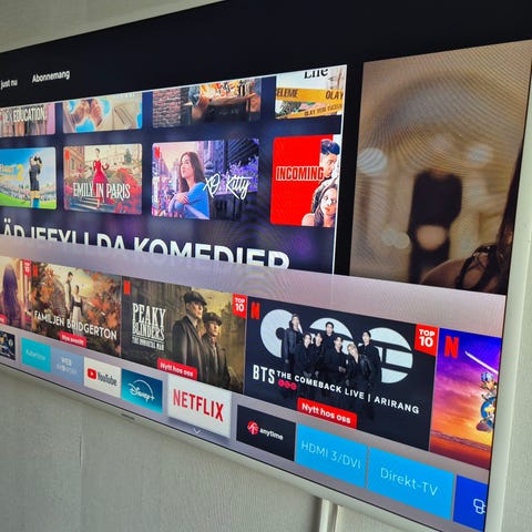 Samsung tv med smart-funktioner som stöd för streamingtjänster som Disney+, Netflix, YouTube och SVT Play. Platt skärm anpassad för väggmontering eller placering på tv-bänk. Lämplig för film, serier och allmän tv-tittande i hemmet.
