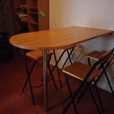 Ev kan några matchande barstolar ingår.