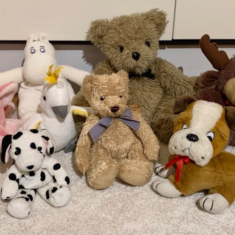 Blandning av gosedjur och mjukisdjur på bulk i olika storlekar och färger. På bilderna syns bland annat nallar, hundar, pandor, grisar, katter, fantasifigurer och andra djurfigurer. De flesta är tillverkade i mjuk textil med stoppning. Mjukisdjuren passar för lek, dekoration i barnrum eller som kramdjur. Samlade i en större påse enligt bild.