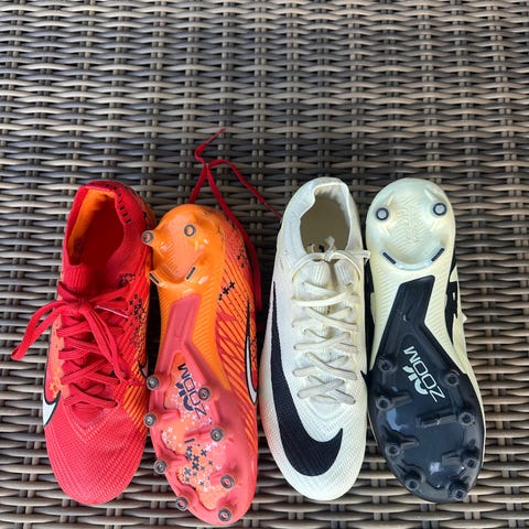 Helt NYA Adidas F50/ ELITE fotbollsskor i flera olika modeller och färger. Skorna är dobbutrustade för spel på gräsplan och konstgräsplan. Bilderna visar bland annat herr och special modeller (Sparkfusion) för dam/tjej i beige/orange, neongul/vit, röd/vit samt lila med kontrasterande detaljer. Vissa av fotbollsskorna ligger på över 3000 kr. Nypris!!