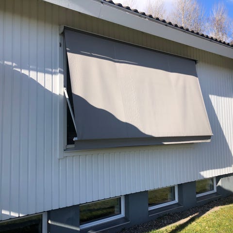 Manuell "Gardin" för skydd mot sol eller insyn är monterad.