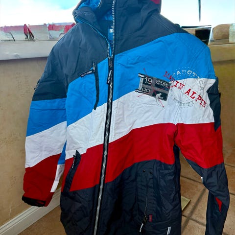 Bogner Sport skidjacka i svart och vitt. Jackan har huva, hög krage och flera ytterfickor med dragkedja. Insidan har meshfoder och snölås i midjan med Bogner Sport-logotyp. Yttermaterialet är anpassat för skidåkning med tryck och märken på ärmar och rygg. Passar för alpinskidåkning och annan vinteraktivitet där man behöver en skyddande och funktionell ytterjacka.