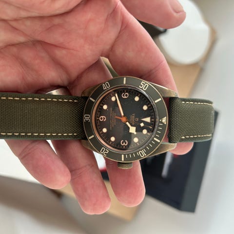 En mycket fin BB58 i färgen blå. Uttagen augusti 2020, ett lite blekt kvitto finns och fås med vid köp. Utöver detta ingår allt original, box, garantikort, tag, servicefodral, extra länkbitar, instruktionsböcker och även 3 extra armband - ett gummi från Vanguard, en uncle seiko ”jubileelänk” och ett mockaband.