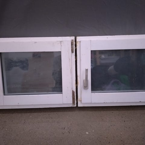 Skyddsplasten sitter kvar på karmarna dock är det lite smutsigt.