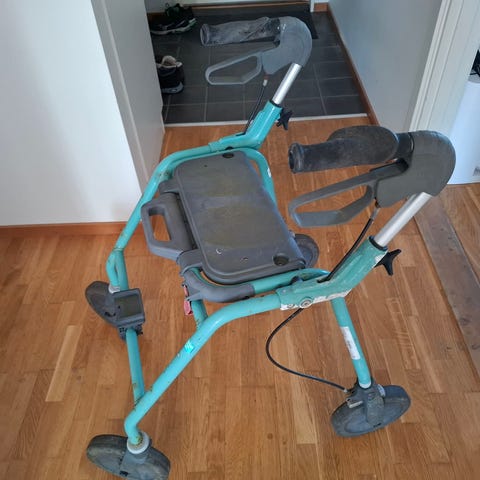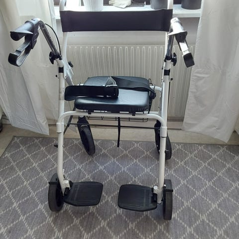 TrustCare rollator i svart utförande. Utrustad med fyra större hjul för stabil gång både inomhus och utomhus. Har sits med handtag för enkel hopfällning samt handtag med bromsar. Passar för personer som behöver gångstöd och möjlighet att kunna sitta och vila vid behov.