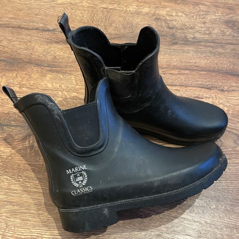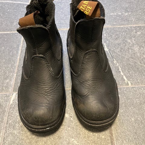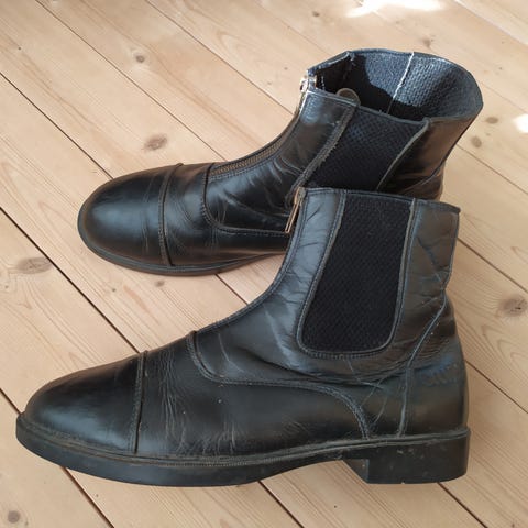 Kort skaft med resår vid ankeln och dragflik bak för enklare på- och avtagning. Grovmönstrad sula med klack, i gummi för bättre grepp. Passar för användning i blött väder och i stallet.