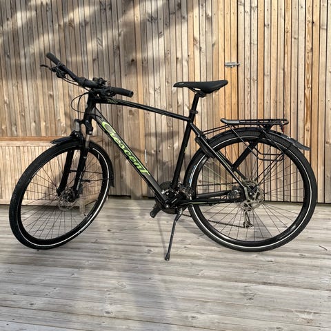 Nästan helt ny cykel i 28 tum och en ram på 51 cm. Använd endast en gång. Blev för stor för mig. Stötdämpad framgaffel och hydrauliska skivbromsar.