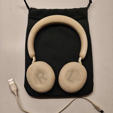 Jabra Elite 45h är on-ear hörlurar designade för musik. De har stora högtalare för ljud och en batteritid på upp till 50 timmar. Hörlurarna har en snabbladdningsfunktion som ger 10 timmars batteri på 15 minuter.