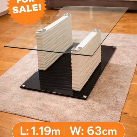 Selling my IKEA ÄSPERÖD coffee table in the sleek black finish with smoked glass top and gold details. In great condition and barely used — there are a few very faint surface marks on the glass that are nearly invisible to the eye and too subtle to show up in photos.
