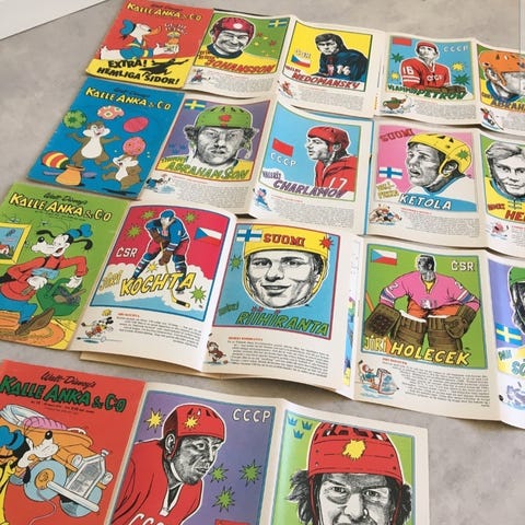 En samling äldre dekaler i varierande skick