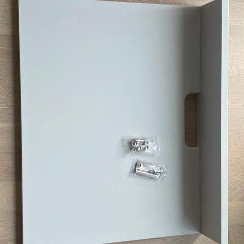 Säljer ett skohyllplan i vitlackerad metall från String – en tidlös designklassiker som passar perfekt i hallen eller garderoben.