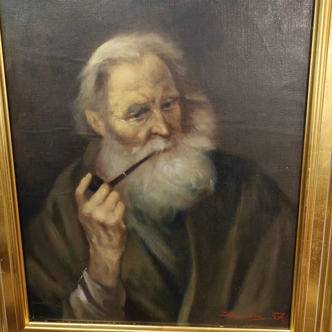 En dekorativ väggrelief/tavla i trä med metall motiv i relief. Motivet föreställer en man i klassisk/antik stil och ger ett elegant och tidlöst intryck.
