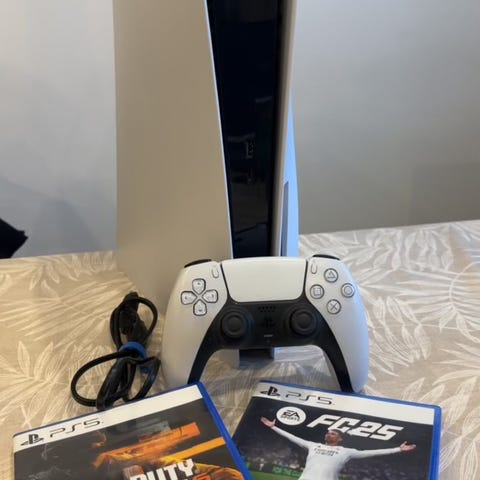 Säljer en PlayStation 5 med skivläsare i mycket fint skick. Konsolen fungerar perfekt och är sparsamt använd. Levereras komplett med originaltillbehör (handkontroll, kablar m.m.).
