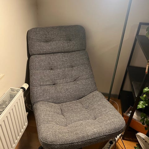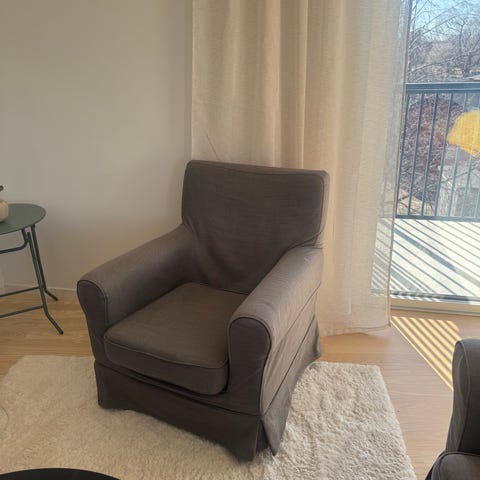 Fåtöljen är i mycket fint skick och knappt använd. Stabil, rymlig och skön!