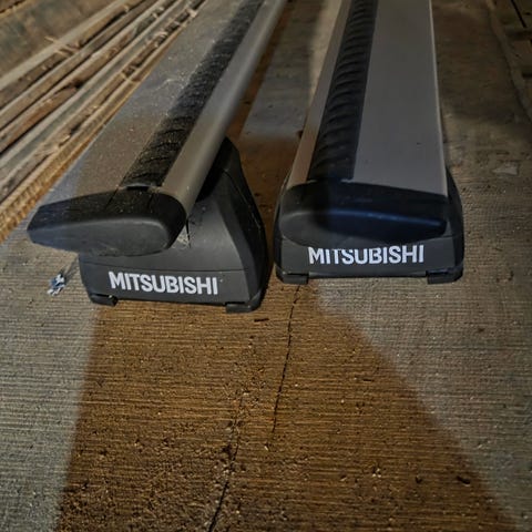 Aluminiumprofiler med aerodynamisk vingprofil, motsvarande Thule WingBar. Originalräcken från Mitsubishi är i praktiken samma typ av system som Thule.