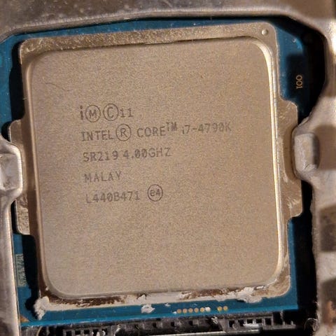 Intel Core i7-4770 processor (CPU) med basfrekvens 3,4 GHz. Fyrkärnig desktop-processor ur Core i7-serien, lämplig för stationära datorer med kompatibelt moderkort och sockel. Passar för allmän användning, kontorsarbete och mer krävande applikationer beroende på övrig systemkonfiguration.