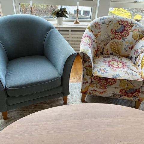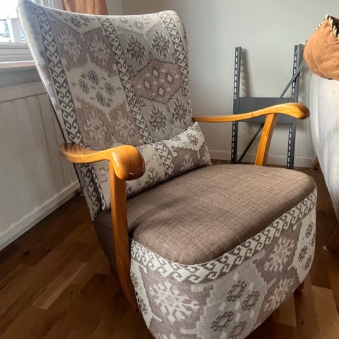 Fåtöljer 4 st i svart tyg medbladmönster 2000 kr för alla fyra eller 600 kr st.