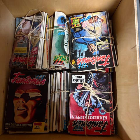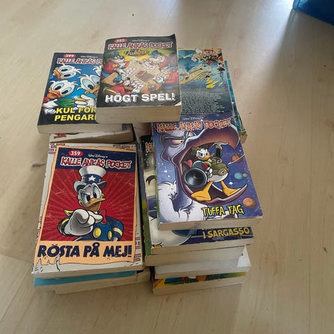 Paket med blandade serietidningar i olika titlar och nummer. Flera svenska serier syns på bilderna, i varierande upplagor och omslag. Tidningarna verkar vara i normalt lässkick och lämpar sig för den som vill fylla på samlingen eller läsa äldre serier. Säljs som ett samlat parti enligt bilderna. Tex Fantomen Bamse Kalle Anka Serieparaden Agent X9 mfl