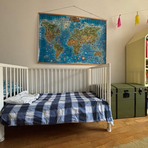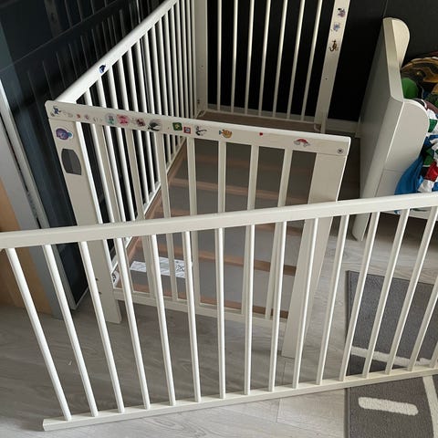 Sängen har blivit lite naggat på några ställen, men fungerar finemang. Väldigt trevlig spjälsäng.