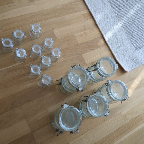 Ett set om 9 st burkar, 4 st stora och 5 st små.