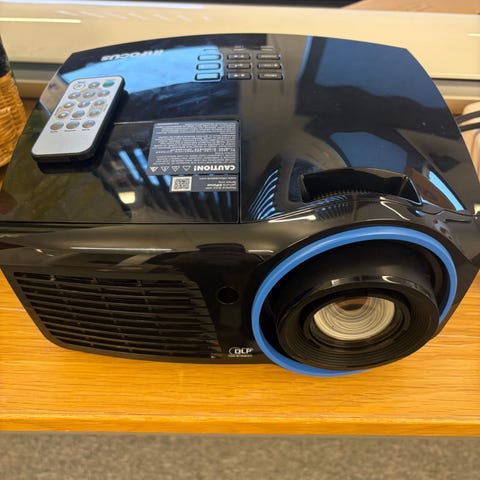 Säljer en projektor Epson som är höj och sänkbar med tillhörande sladd och fjärrkontroll. Den är i bra skick.