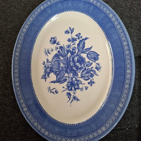 Kanna med handfat Burleigh Ironstone Staffordshire England. Handfat diameter 38 cm, höjd 12 cm. Kannans höjd 29 cm.