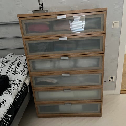 Modellen går ej längre att köpa från Ikea. Rymliga lådor.