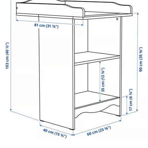 Skötbord med lite tillbehör. Använt skick. https://www.ikea.com/se/sv/p/sniglar-skoetbord-bok-vit-20045205/