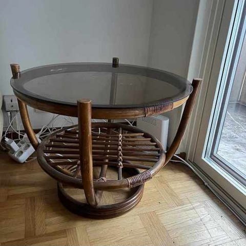 Säljer mina fina soffbord i bambu. Det stora är 60 cm i diameter och 45 cm högt och det lilla är 45 i diameter och