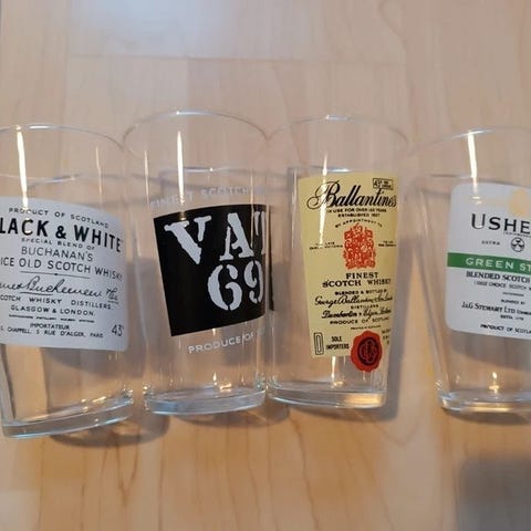 NB Old Whisky glasdispenser med kran. Dispensern är tillverkad i klart glas med tryckt Old Whisky-dekor i svart och orange. Utrustad med metallkran i nederkant för tappning av dryck. Botten är märkt "Vetro Neutro NB". Lämplig för servering och förvaring av whisky eller andra drycker i hembar eller kök.