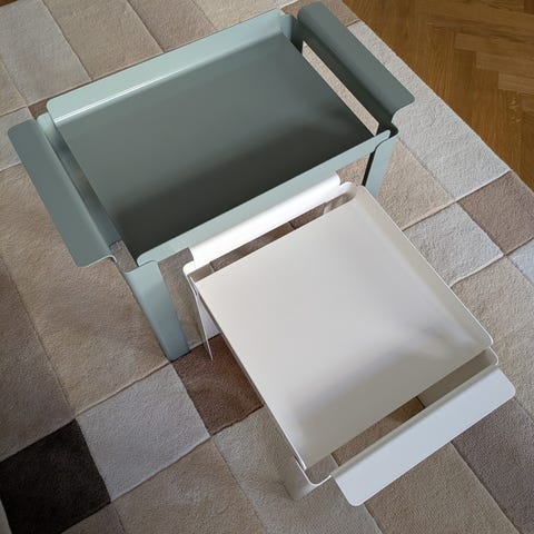 Stylish matching set in industrial metal style. The FJÄLLBO coffee table is known for its sturdy metal frame and lower shelf. VIKHAMMER side table in the same aesthetic. Good used condition.