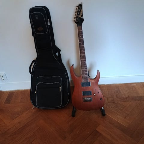 Fin Ibanez elgitarr i röd solid kropp med dubbla mikrofoner, volym- och tonkontroller samt 6-strängad hals med greppbräda i trä. Allt på bilderna ingår inklusive Vox gitarrförstärkare, gitarrställ och hörlurar för att kunna lira utan att störa grannarna eller familjen. Lämplig för elgitarrspel i hem- och övningsmiljö. Varsamt använd under ett par års tid men på senaste tyvärr bara stått och samlat damm och säljes nu för ett nytt äventyr! Mycket fint skick.