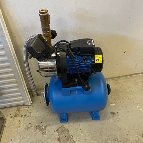 ”För automatisk bevattning och vattenförsörjning av fritidshus. Även för tömning av bassänger m.m. Med automatisk tryckströmbrytare och manometer. Ej för saltvatten.”