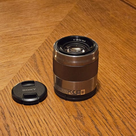 Sony E 55–210mm OSS telezoomobjektiv i svart utförande. Brännvidd 55–210 mm med variabel bländare f/4.5–6.3, avsett för Sony E-fattning (APS-C). Objektivet har optisk bildstabilisering (Optical SteadyShot) och manuell/automatisk fokus. Passar för exempelvis sport-, natur- och porträttfoto där längre brännvidd behövs. Levereras med motljusskydd och objektivlock enligt bilderna. Sparsamt använt.